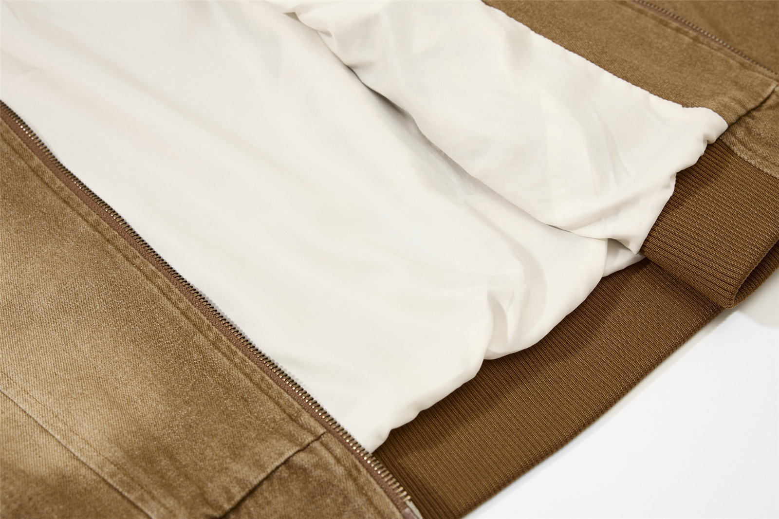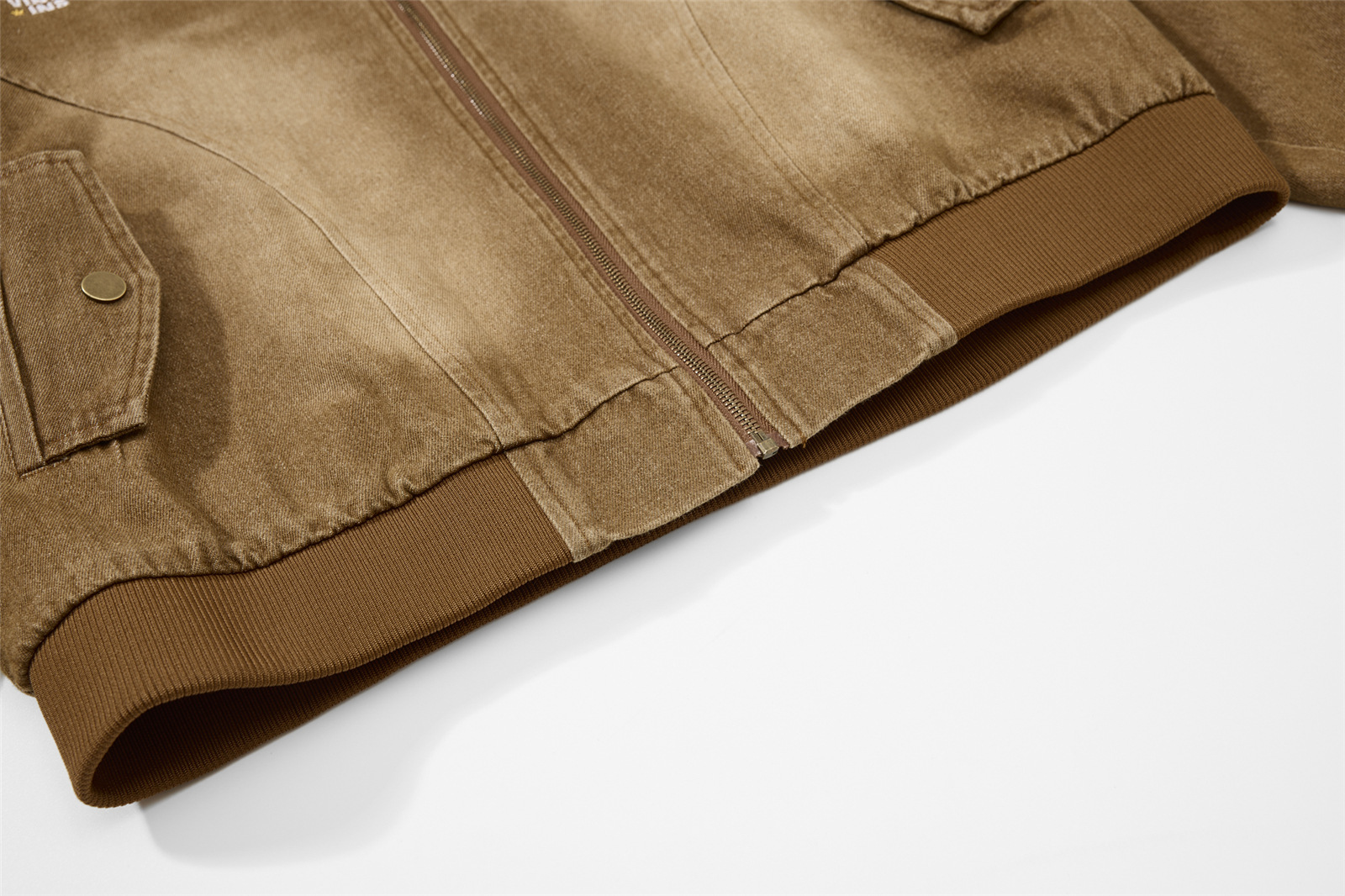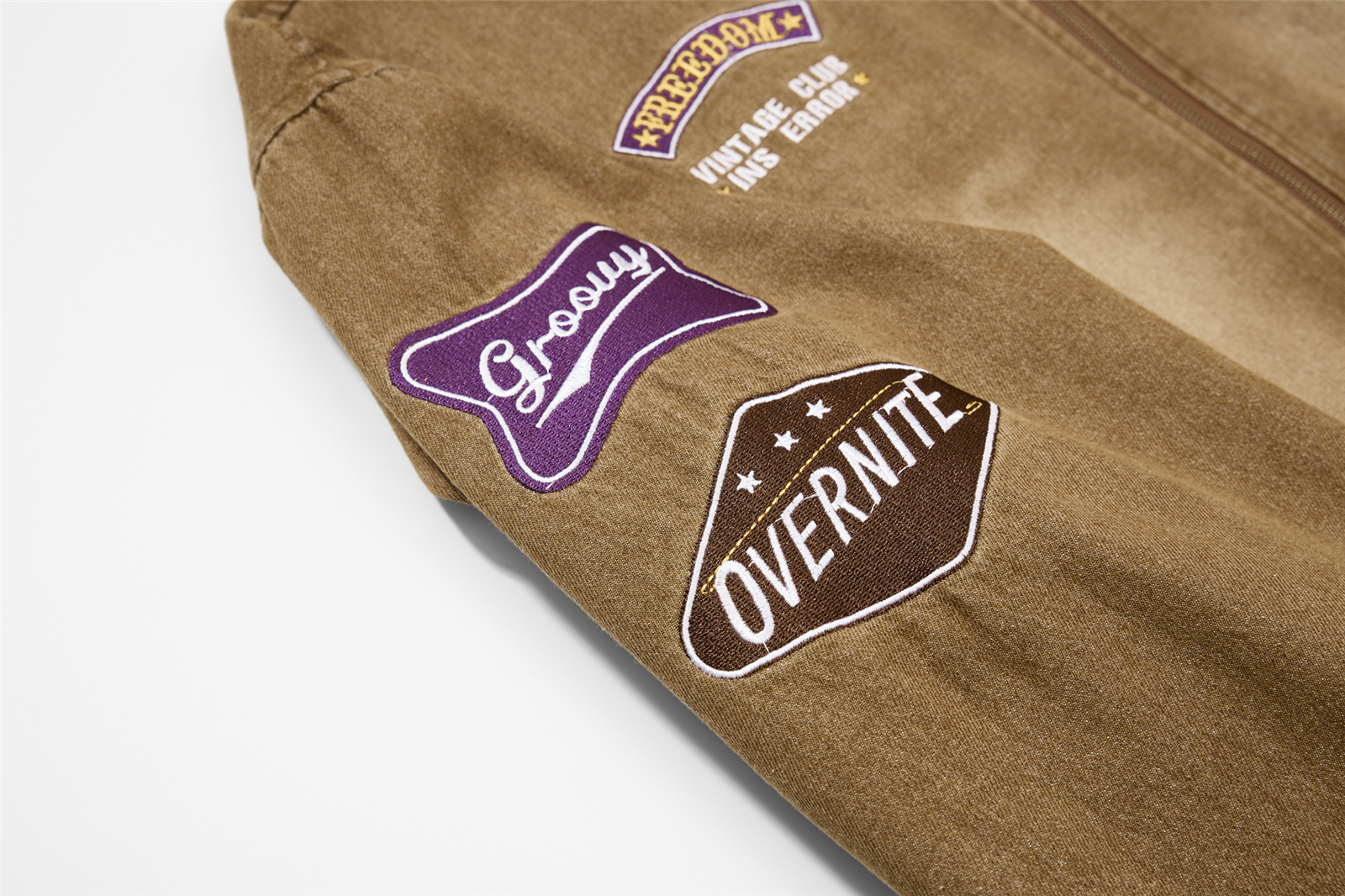Retro Heavyweight Letter Embroidery Streetwear Cargo Jacket for Men, Loose Couple's Turn-Down Collar Outerwear